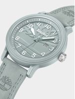 This stylish watch features a grey upcycled, ocean-bound plastic round case, matte grey dial and grey genuine leather strap.