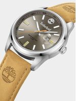 This stylish watch features a Stainless steel round case, matte grey dial and tan genuine leather strap.