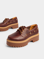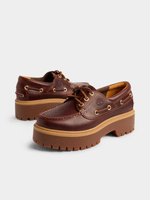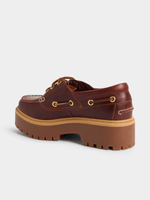 Our Stone Street boat shoe helps offer a fresh take on a classic silhouette, delivering a modern twist on the traditional summer standby. A platform, rugged outsole offers a variety of styling options. Constructed with Premium Timberland® Leather for durability season after season. Inside is a ReBOTL™ fabric lining made from at least 50% recycled PET plastic and an OrthoLite® footbed for comfort with every step.(supplier Style:TB0A2QDMD57)