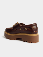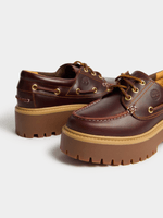This women's boat shoe features a Premium Timberland leather upper with the distinctive look of 360° lacing system, as well as a lining with ReBOTL material containing at least 50% recycled plastic. The Ortholite footbed inside offers long lasting cushioning and helps prevent unwanted odours.(Supplier Style:A2QDMD571)