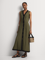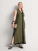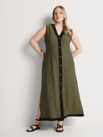 Our Tipped Button Through Column Dress is understated and classic yet totally on-trend. This versatile, lightweight maxi dress is perfect for warm summer days. Wear it to work paired with block heels and a blazer, or on the weekend with sneakers.