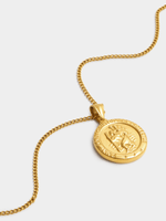 This intricately detailed Saint Christopher disc pendant on a 50cm chain is expertly crafted in Gold Plated Stainless Steel. All Tempo Jewellery is hypoallergenic, waterproof and durable, boasting a 1-year guarantee.