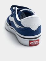 The Toddler's Vans Brooklyn LS STR in Blue and White brings a clean, sporty aesthetic to the classic Vans lineup. Specially designed for growing feet, this sneaker combines heritage design with features that make life easier for both parents and toddlers.