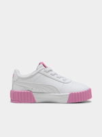 The Toddlers’ Puma Carina 3.0 AC in White/Pink is a sweet, California-inspired update to a fan-favorite silhouette, perfectly scaled down for little feet. This "3.0" edition stays true to its 80s beach-style roots with a crisp white synthetic leather upper, elevated by a soft Candy Pink Puma Formstrip and branding. Designed for ultimate convenience, the "AC" (Alternative Closure) system features elasticated "bungee" laces paired with a sturdy hook-and-loop top strap, allowing parents to get their toddlers ready in record time. With its slightly thickened "platform-look" sole and signature SoftFoam+ sockliner, these sneakers provide a trendy, cushioned foundation for every playground adventure.