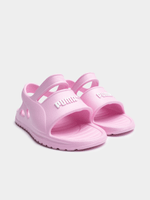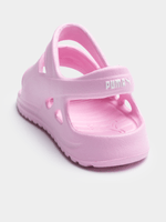 Introducing the toddlers' Puma Divecat 2.0 Pink Sandal, crafted with a durable PU fabric for all-day comfort. Perfect for little feet on the move, this sandal is lightweight and stylish. Ideal for playtime or trips to the beach, it's the perfect addition to any summer wardrobe. Let your little one step out in style with Puma!