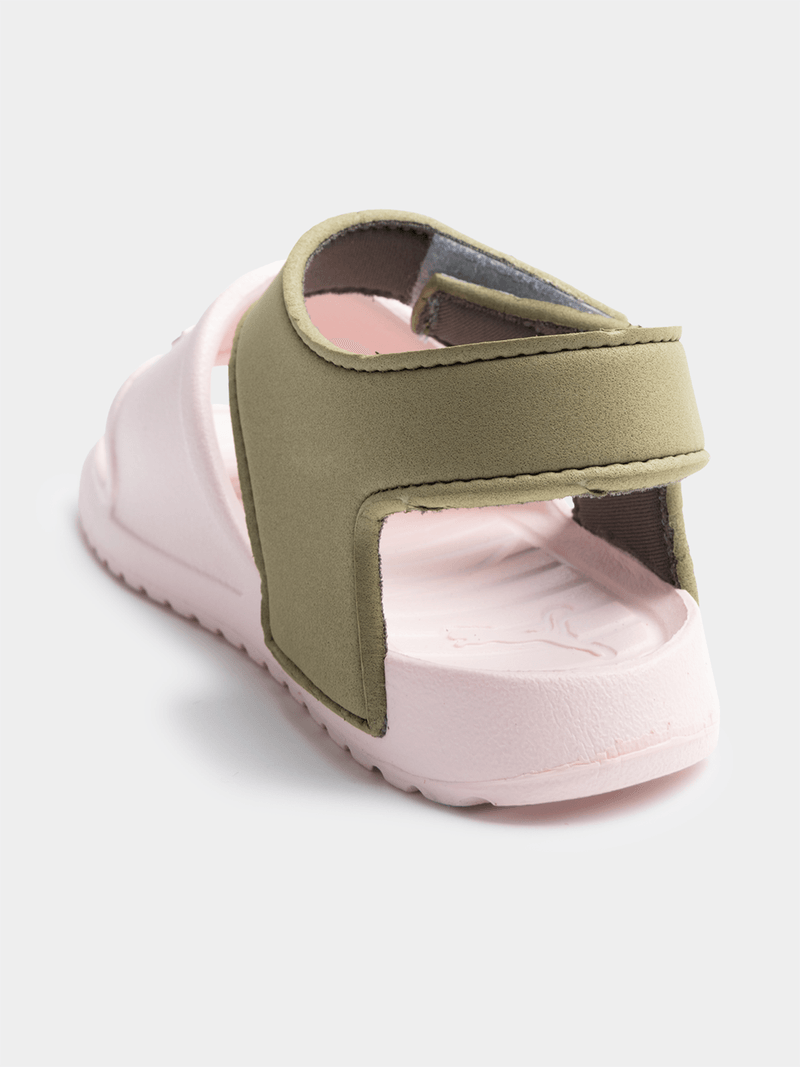 Designed for tiny feet, these soft and lightweight EVA sandals are perfect for all-day play. The molded slide and back strap provide optimal comfort in both wet and dry conditions. A secure hook-and-loop closure and textured footbed ensure they stay on comfortably, making them super easy for quick on-and-off action.