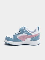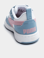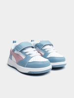 Bring a bold, court-inspired look to your little one’s wardrobe with the Toddlers Puma Rebound V6 Low in a vibrant White, Pink, and Blue colorway. These sneakers take classic basketball DNA and shrink it down for everyday play, featuring a durable synthetic upper that stands up to toddler energy and a low-cut collar for easy ankle movement. The playful mix of colors makes them a standout choice for any outfit, while the cushioned sockliner and sturdy rubber outsole ensure a soft, stable ride for developing feet. Finished with iconic Puma branding, these shoes offer the perfect combination of retro athletic style and the practical comfort needed for all-day adventures.