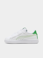 Sweet Style for Little Feet: The Puma Smash 3.0 Hearty V in White/Green is a charming update to the classic court-inspired silhouette. Combining a clean, tennis-ready look with playful "Hearty" design elements, these sneakers are perfect for toddlers on the go. The fresh white base is accented by vibrant green details, offering a crisp and energetic aesthetic that’s as durable as it is adorable.