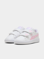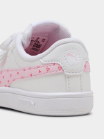 Adorable Comfort & Classic Style: The Puma Smash 3.0 Hearty V in White/Pink is a sweet and sporty update to the classic tennis-inspired silhouette. Combining a clean, timeless look with playful feminine accents, these sneakers are designed to keep your little one stylish and steady. The crisp white base is perfectly complemented by soft pink details, making it a versatile favorite for everything from playdates to family outings.