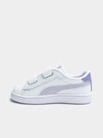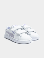 The Toddlers Puma Smash 3.0 in White/Lilac is the perfect blend of tennis-inspired heritage and adorable everyday style for little adventurers. Crafted with a clean, durable upper and a secure fit, these sneakers feature a fresh white base accented by soft lilac details that add a playful pop of color to any outfit. The updated silhouette ensures a comfortable feel for growing feet, while the sturdy rubber outsole provides the necessary grip for those first steady steps and playground fun. Combining iconic Puma branding with a practical design, these shoes are a charming and reliable choice for active toddlers on the move.