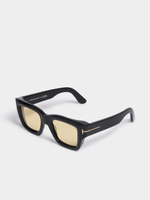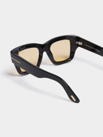 The Ilias present a shiny black, square frame with smoky lenses. Branded eyewear case and lens cloth included.