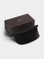 A shiny black, square frame with photochromic brown lenses defines the Ilias. Branded eyewear case and lens cloth included.