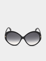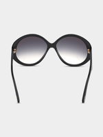Elegant oversized round shape, black with gradient smoke lenses. 100% UV protection. These glasses come with a protective case.