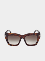 Modern elegance, bold butterfly silhouette, sophisticated dark havana hue, radient smoke lenses. Iconic Tom Ford "T" metal accents on the temples. 100% UV protection. These glasses come with a protective case.