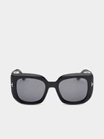 Timeless Square Shaped, full-rim glossy black frame, polarized lenses. These glasses come with a protective case.