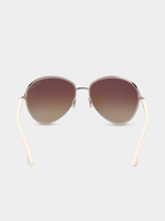 Classic Aviator style, sleek hue, acetate temples, and adjustable nose pads, Brown Mirror lenses. 100% UV protection. These glasses come with a protective case.