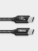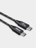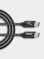 Experience lightning-fast charging with the TROO certified 60W Type-C to Type-C braided cable. This cable ensures a secure and reliable connection for all your devices. Say goodbye to slow charging and hello to efficient power delivery. Stay connected with this sleek black and white cable.