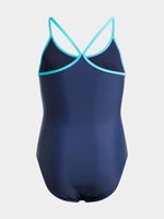 Introducing our Girls TS Placement Print Navy Swimsuit. This swimsuit features thin straps for a perfect fit. Made with high-quality materials, this swimsuit is durable and comfortable. Ideal for active girls who love swimming and water sports. Perfect for the beach or pool.