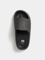 Introducing the TS Junior Grade-School Black Slides. Made with durable synthetic fabric for everyday wear. Enjoy the comfort of blown EVA soles. Perfect for any casual occasion. Get yours today and step out in style!
