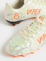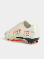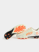 The TS Junior Viper FG Pearl/Orange Boots are made for players who love that split‑second moment when the whole game opens up — and they’re the first to react. The pearl‑white upper has a smooth, almost glassy finish that catches the light as you move, while the bright orange detailing slices through the look like a warning sign: you’re about to strike. The boot’s shape hugs your foot low and tight, giving you that barefoot‑fast feeling when you’re slipping between defenders or lining up a clean first touch. Underneath, the firm‑ground stud layout is tuned for explosive take‑offs, sharp angle changes, and that extra snap in every sprint. When you lace up the Viper FG, you’re not just stepping onto the pitch — you’re stepping in with intent.