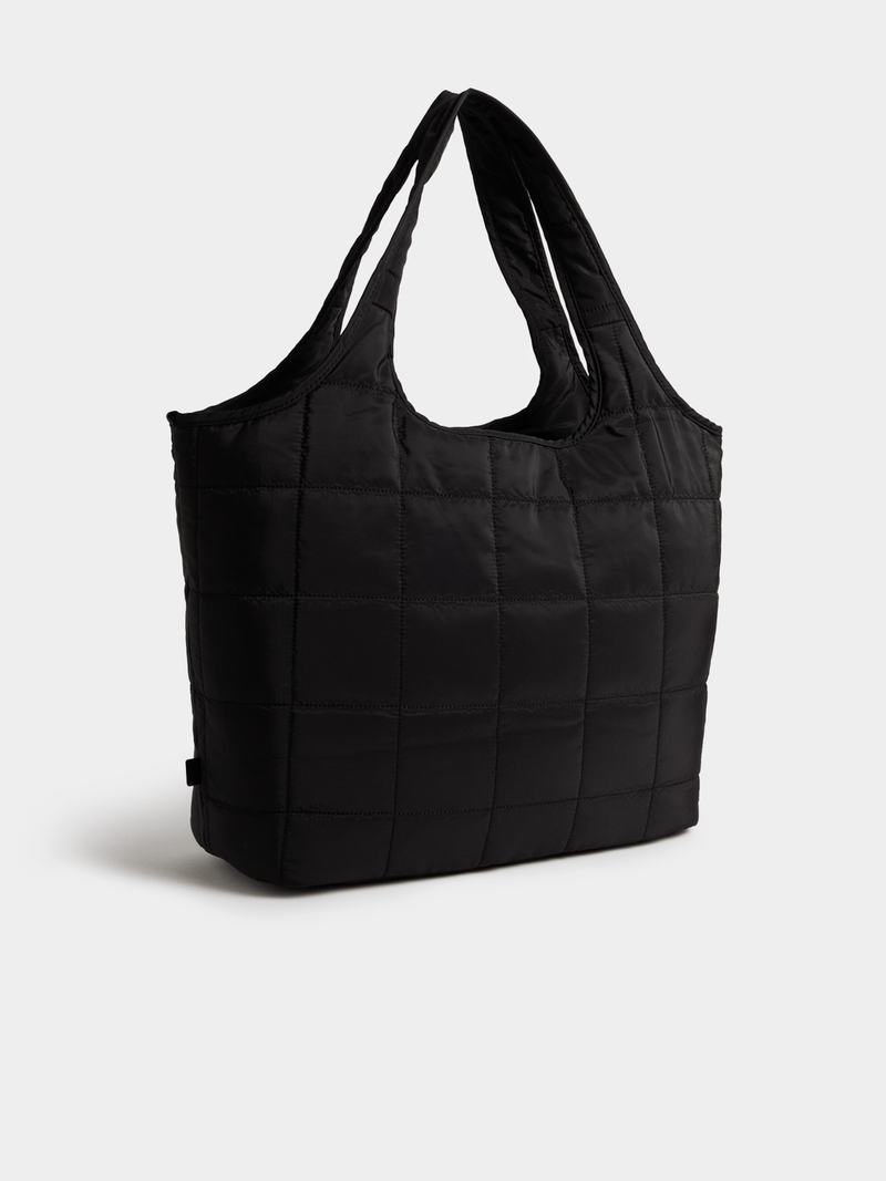 Stay stylish and organized with the TS Puffer Black Tote Bag. Made from durable polyester, this tote features a spacious interior to hold all your essentials and puffer feature as a protective layer. Perfect for everyday use, it's versatile and easy to carry. Add a touch of urban chic to your look with this trendy puffer tote bag.