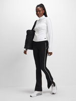 Flattering, flexible, and fashion-forward—the TS women's piped flare is designed to move with you while making a statement. Crafted from 4-way stretch fabric, these pants offer supreme comfort and a flawless fit. The flared leg and slits at the hem create an elongating effect, adding a touch of elegance to your every step.