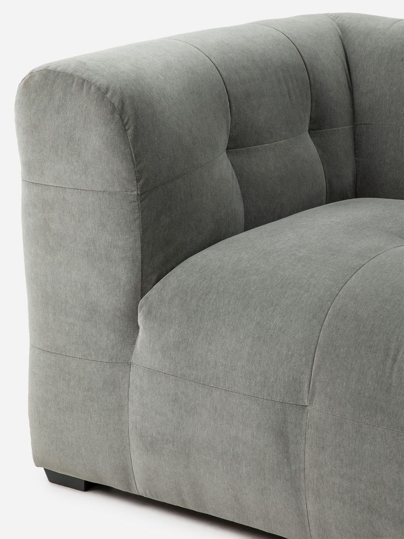 The Tuft 1 Seater Couch exudes sculptural elegance and modern sophistication, featuring a soft and inviting tufted design complemented by clean lines and considered details. The modern, tub-style shape with high, curved armrests and a low backrest brings contemporary style and wrap-around comfort to your living space.