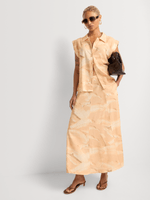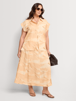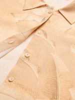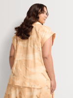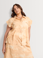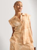 Get ready for summer with this stylish turn-up cap sleeve shirt. Made from a comfortable linen blend fabric, this regular length shirt features a leaf print design. Perfect for any casual outing, this shirt is easy to care for and proudly made in South Africa.