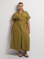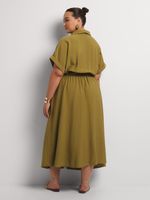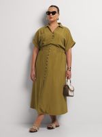 Our Turn Up Cap Sleeve Shirt Dress is a chic and sophisticated choice. This classic style pairs beautifully with buckled sandals for effortless weekend style. Add oversized sunnies and a woven shopper bag to complete the look.