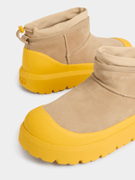 A new take on an UGG® Classic, our Classic Ultra Mini Weather Hybrid adds even more wearing ability with waterproof suede and seam-sealed construction. This version of the Classic Ultra Mini keeps the same shorter shaft, but tops it with a toggle closure to help keep out slush and snow. The lightweight sugarcane EVA outsole also gets an update with the addition of Spider Rubber® Pods for traction in slippery conditions.(Supplier Style:1174196-MMM)