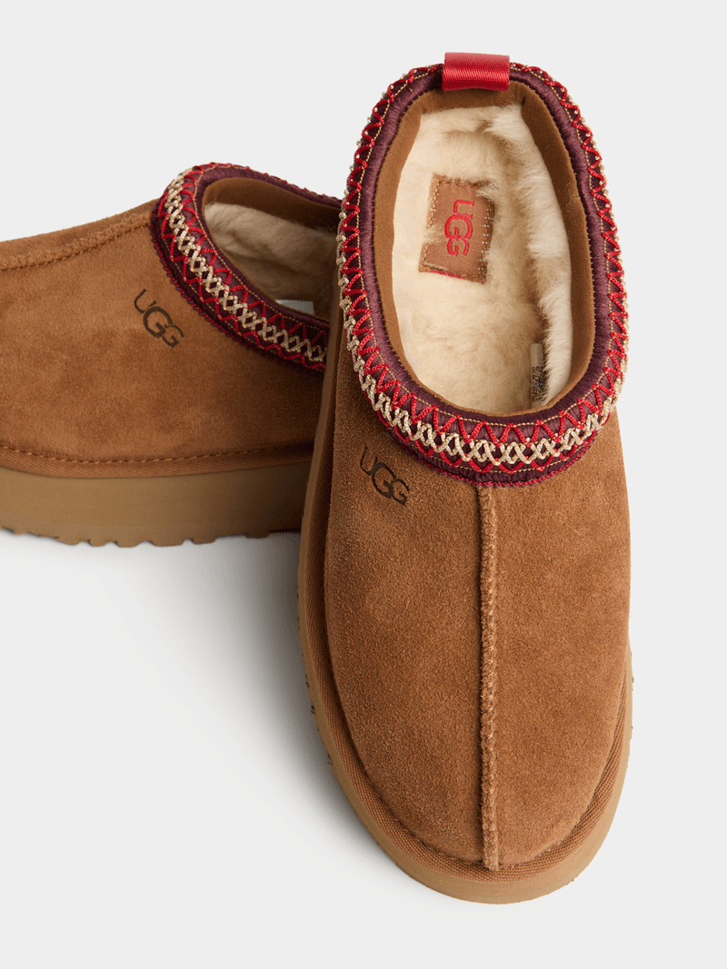 A maximalist take on the timeless Tasman, the Tazz refreshes the familiar silhouette with a 1.5" platform sole for boosted cushioning and style. Crafted from the same rich suede as the original, it's lined in our signature UGGplush wool blend for a slipper-like feel indoors or out.(Supplier Style:1174471-CHE)