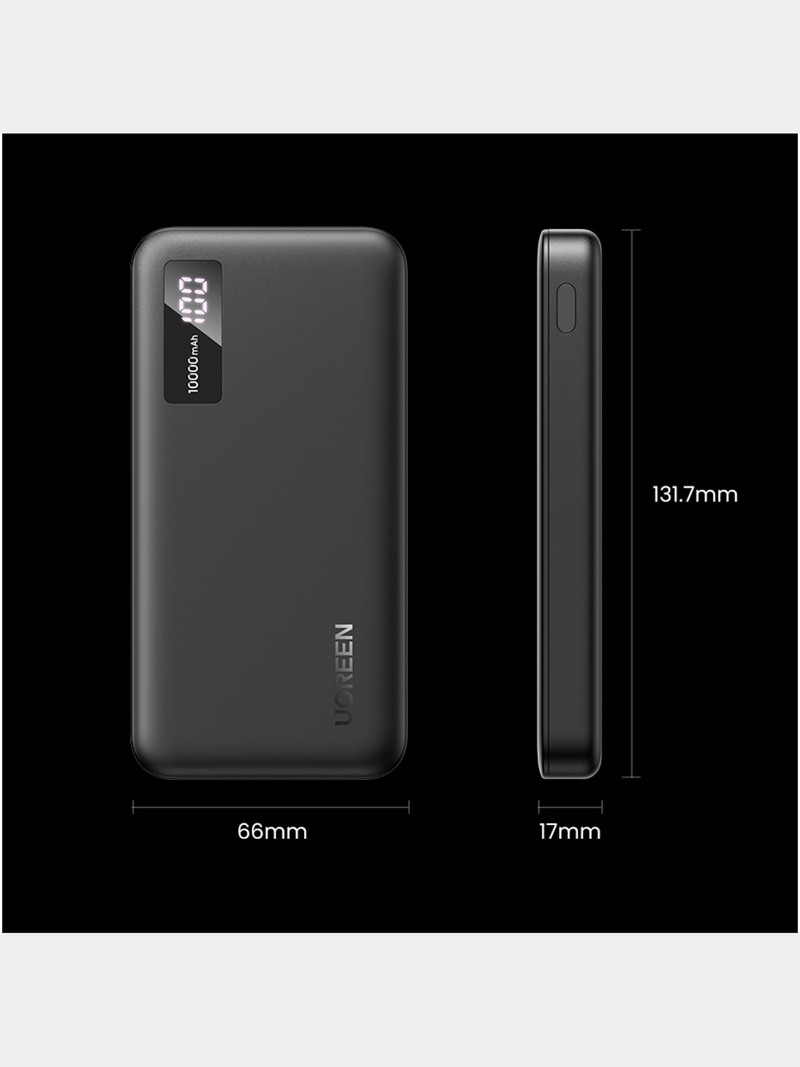 UGREEN PD Power Bank 10000mAh is portable and efficient in charging devices. It comes with a built-in 10000mAh lithium polymer battery that provides adequate power and allows for extended usage. It features two output ports. The USB-C power delivery output is capable of 20W and it has an intelligent sense to support quick charge technology, the USB-A port is capable of 22.5W.