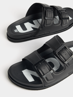 Step out in comfort with the Union-DNM Double Strap Black Slides .Built for everyday ease and statement appeal, these double-strap slides redefine off-duty style. The bold Union logo across the base brings instant impact, while the engraved metal details on the straps add a subtle hit of street-luxe refinement. Designed with a cushioned footbed for comfort, they’re made to move wherever your day takes you from city streets to chill weekends.