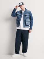 The Union-DNM Men's Dark Blue Workwear Jeans showcase a classic, durable design perfect for daily wear. Crafted from cotton and elastane, these denim jeans offer a comfortable fit with slight stretch. Noteworthy features include reinforced stitching, a subtle faded wash, and practical pockets, ideal for a rugged lifestyle.