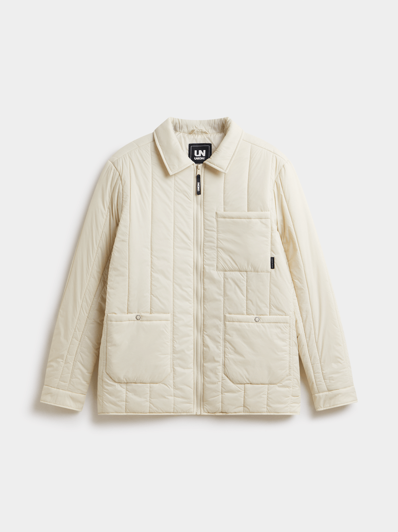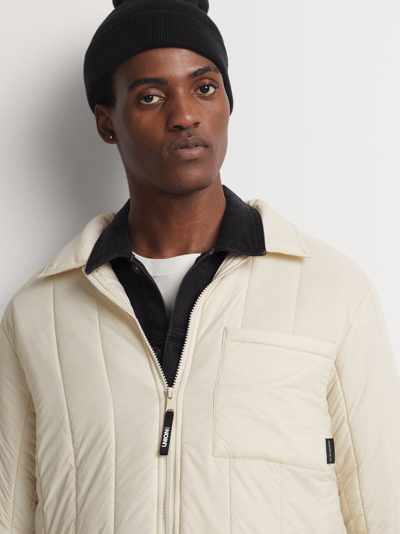 Clean lines, padded comfort. The Union-DNM Men's Ecru Quilted Jacket features a lightweight quilted design with a modern silhouette and subtle detailing. Built for layering, made to move. Minimal look. Maximum impact.
