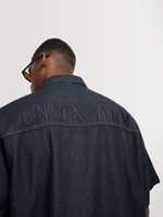 Crafted from a denim blend, the Union-DNM Indigo Shirt offers a warm wash, cool iron, and dry cleanable care instructions for easy maintenance. The boxy fit provides a relaxed touch, while the timeless indigo hue adds versatility to your wardrobe. Made for comfort and style, this shirt is a must-have for any casual occasion.