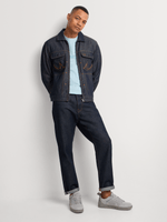 Set the tone with a layer built to last. The Union-DNM Men’s Raw Trucker brings classic denim attitude with a clean, structured finish. Cut from rigid raw denim, it holds its shape while fitting in uniquely with every wear. Metal hardware, sharp seaming, and a timeless trucker silhouette give it that authentic edge, rugged enough for the grind, refined enough for the everyday. Strong lines. Real texture. Union character.