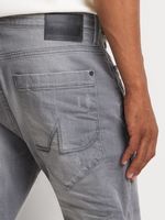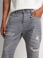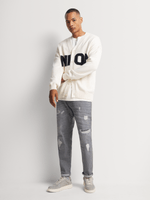Worn-in feel, standout finish. The Union-DNM Men's Rip & Repair Light Grey Slim Jeans feature distressed details and subtle patchwork for a rugged edge. Slim fit, soft stretch denim—built for comfort, made to turn heads. Raw. Refined. Ready.