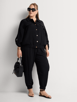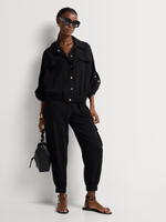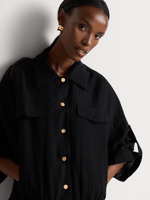 Relaxed and effortlessly stylish, our Gold Press Studs Utility Shacket is an on-trend look for summer. Pair it with the matching bottom for a stylish co-ord set.