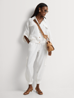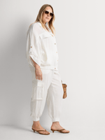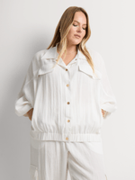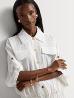 Relaxed and effortlessly stylish, our Gold Press Studs Utility Shacket is an on-trend look for summer. Pair it with the matching bottom for a stylish co-ord set.