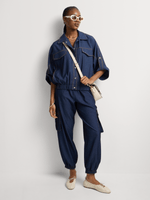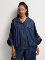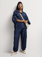 Our Co-Ord Press Stud Utility Shacket is made from soft fabric for a lightweight layer. Wear it with the matching bottoms for a matching set. Add buckled slides or heels for a different take.