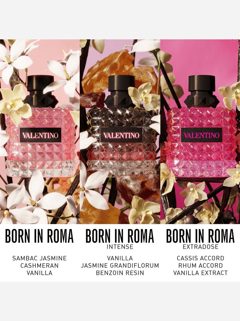 Born In Roma Intense is a magnetic floral ambery, pushing vanilla & jasmine into a captivating embrace to glorify magnificent personalities.