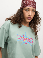 Introducing the Van Women's Machinima Relaxed Crop T-Shirt in Gray Olive. Made from a cozy knit fabric, this tee is perfect for everyday wear. Enjoy the relaxed fit and stylish cropped design. Supplier style is (VN000R08EMW1).