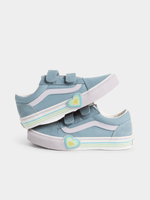 The Kids Old Skool V reimagines our iconic Sidestripe shoe by swapping traditional laces for double hook-and-loop closures. Made with suede and canvas upper, this low-top style maintains its classic appeal while providing an easy, secure fit that will keep your little one comfortable all day.(Supplier Style:VN000D4DCFL)