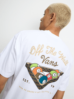 The Vans Pool Table Graphic Tee in white is the perfect addition to your casual wardrobe. Made from soft knit fabric, this tee features a cool pool table graphic. Comfortable and stylish, it's a must-have for any t-shirt collection. Easy to pair with your favorite jeans or shorts for a laid-back look. Supplier code_VN0008SJWHT