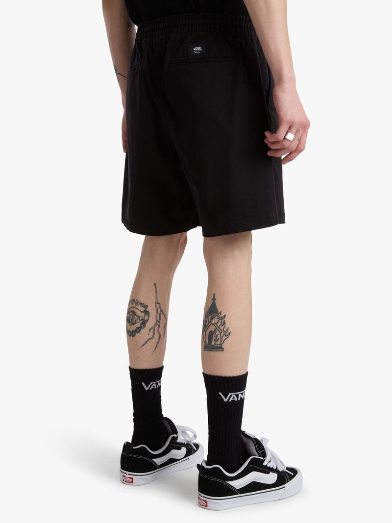 The Range Relaxed Elastic Short is a 98% organic cotton, 2% elastane improved volley-short with an updated elastane fabrication and a relaxed fit. The elastic waist and drawcord provide comfort, while the front slash hand pockets and rear welt pockets offer plenty of stash-and-go portability. Model is 6 feet tall and wearing a size Medium. Supplier Code_VN0A5FKDBLK1.