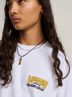 Wear a piece of Vans history in the Shop Front T-Shirt, paying homage to the company's first factory. This classic fit short sleeve crew neck T-shirt features a screen-printed graphic of a Vans® logo on the front, with a retro storefront ad of the factory's address on the back. Supplier style is (VN000M60FLB1).