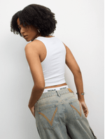 Go hard in the Checkerboard Fitted Crop Tank, made of heavy cotton jersey for durable wear in a body-skimming silhouette. With a mineral wash for a weathered, vintage look, it's finished with our iconic checkerboard stripe across the chest. Supplier style is (VN000MC0WHT).