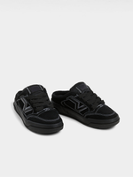 The Upland is a shoe pulled from the Vans archives and reimagined in a mule silhouette to slide on and go. The outsole design provides a chunky stance and underfoot support, while the elevated upper materials and molded “V” logo pair for an iconic yet modern style. Finished in goes-with-anything black, oversized laces, and bold logo branding at the tongue, the Upland Mule blends the best of the past with the present.(Supplier Style:VN000D7ABKA/1)