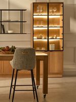 Inviting design meets impeccable style. The Venesse barstool is timeless in textured speckle fabric, curved and padded for added comfort, inviting your guests to stay a while longer. While the black metal legs cut a clean silhouette, the statement handle detail at the back takes this barstool to a sophisticated next level.